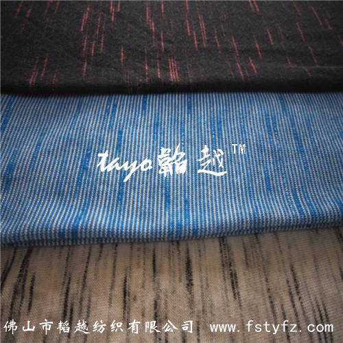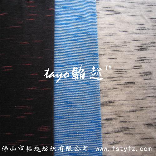 【产品介绍】现我司推出一种新型面料纱线——段彩纱。此纱线织成的面料是段彩的效果。可以通过单染,使得云斑点缀于面料之中,看似云彩悬浮于面料之上,极富有层次变化及立体感,令面料更加具有特色。也可任意选用不同的对比颜色,通过套染而达到强烈对比的色彩效果。适合针织织造工艺,质地轻,手感滑爽,色彩对比使布面效果的层次变化和立体感更加强烈。